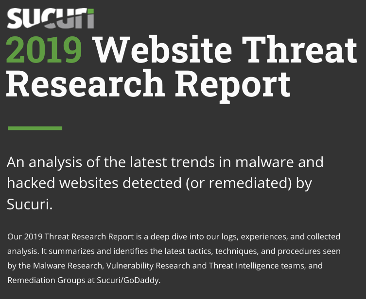Interesting: "2019 Website Threat Research Report An analysis of the latest trends in malware and hacked websites detected (or remediated) by Sucuri." (direct pdf link) https://sucuri.net/wp-content/uploads/2020/01/20-sucuri-2019-hacked-report-1.pdf …pic.twitter.com/XJnoAoHSfW