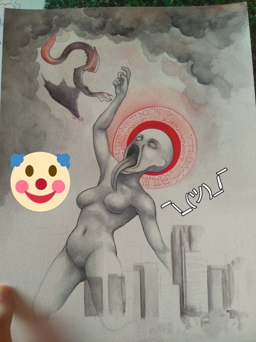 WIP de la mort ;_; Moi : je vais faire un fanart de la Grotesquerie Queen de Drakengard :D Also moi : ne sait pas dessiner les nuages, les bâtiments/la ville, les dragons, l'anatomie humaine correcte, le texte, le-