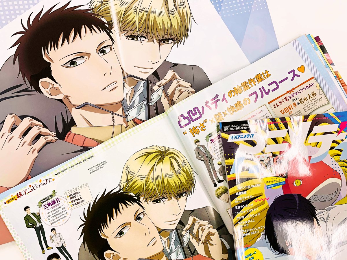アニメディア11月号『さんかく窓の外側は夜』記事では、三角と冷川の描きおろしイラストを掲載