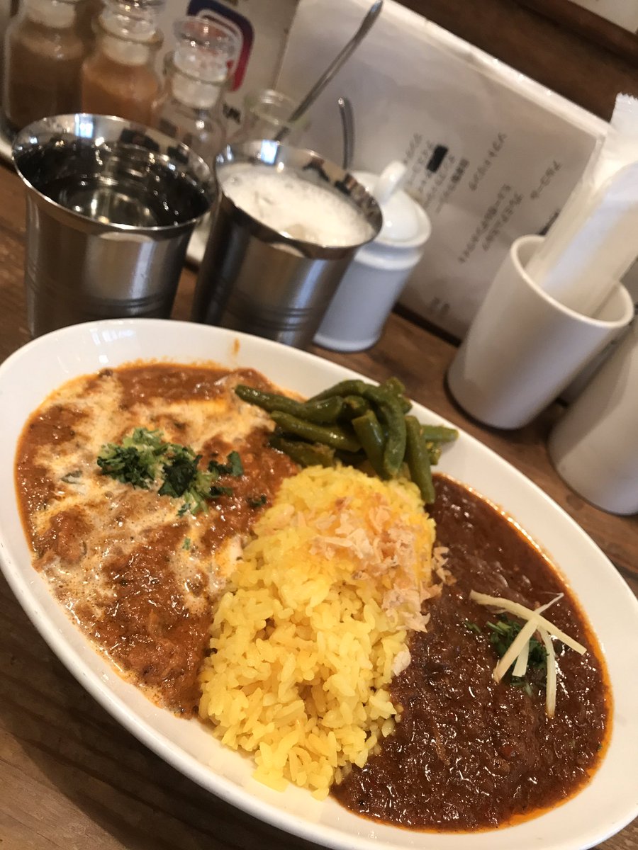 #立川駅#レインボウスパイス にてポークビンダルとチキンのあいがけ.肉にまで染み込む複雑なスパイス♪ カレーはこうじゃなくちゃpic.twitter.com/rn86uasqQf