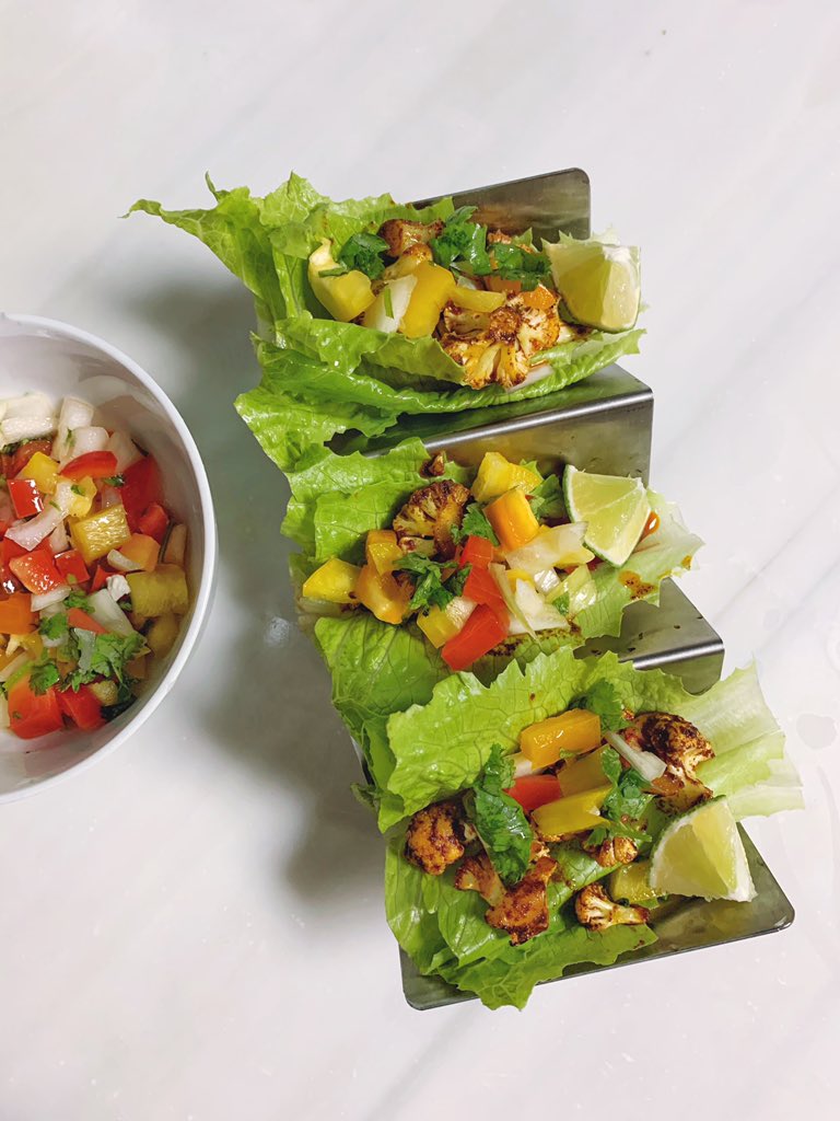 these cauliflower lettuce tacos are “clean” no sugar needed (as in BBQ sauce) to spice them up, using annato, paprika, cayenne pepper, salt