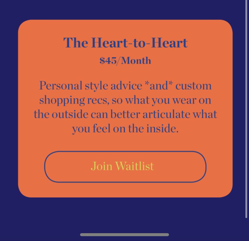 @ManRepeller as a service They’re launching a text-based subscription, $25 dollars seems steep, imagine paying $45 a month for a “heart to heart” what say you? it’s a huge pass for me