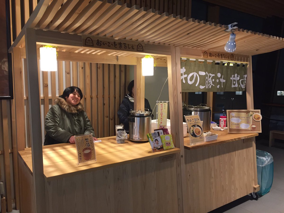 本日から3日間(月曜・祝日まで)、16:30から18:30ごろにかけて、飯山駅の2階にて、豚汁、おにぎり、甘酒の販売をやってます! 帰りの新幹線に乗る前に、あったか、小腹を満たしてくれますよ(^O^)/pic.twitter.com/WlShbmvhYK