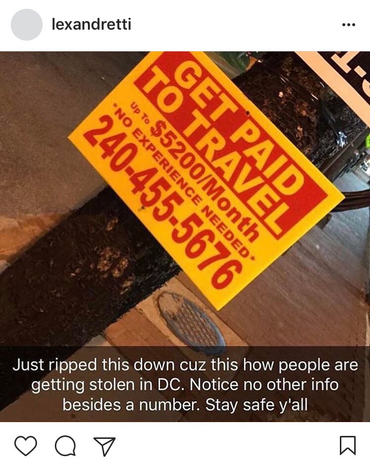 it's not always as blatant as someone getting snatched & thrown in a van. They're luring ppl in. Talk to your siblings.pic.twitter.com/5qrrMhAANs