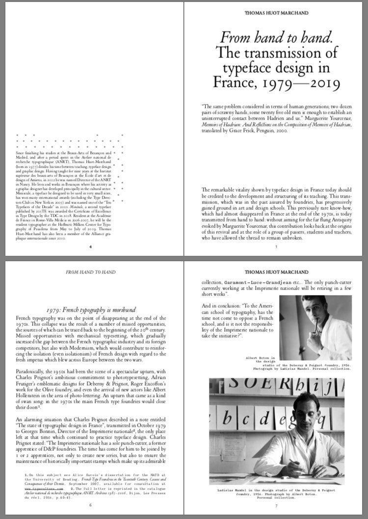 « From hand to hand. The transmission of typeface design in France, 1979—2019 » essay by Thomas Huot-Marchand in Graphisme en France 2019