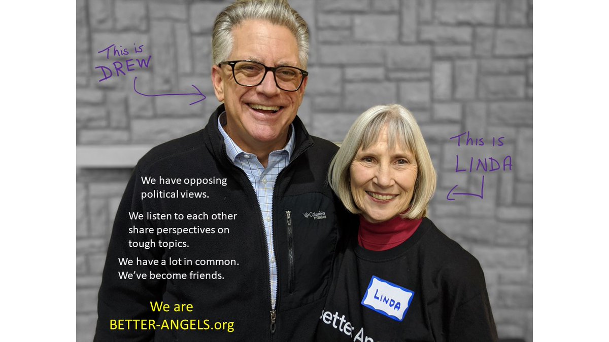 "Here’s a crazy concept: Democrats and Republicans can be friends." The Democratic and Republican chairpersons in Jasper County have been named Better Angels Friends of the Year by
