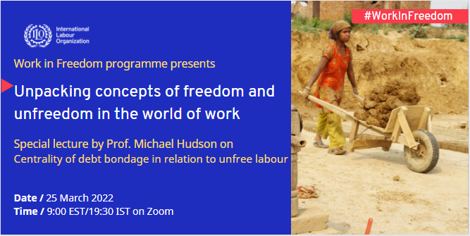 @ILO 's#WorkInFreedom & Prof Michael Hudson for a special lecture on "Centrality of Debt Bondage in relation to unfree labour" on March 25, 2022 at 9 am EST. More info: https://bit.ly/360C0sF Register: https://bit.ly/3KlW871 https://twitter.com/iloarabstates/status/1504092719051907079 …