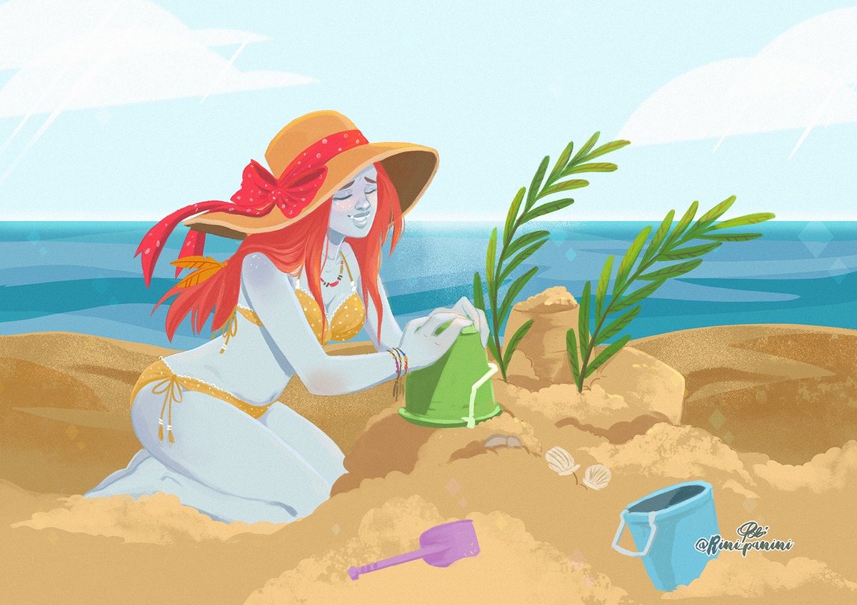 My druid trying to build a sandcastle for #swimwithglitter from art discord!
