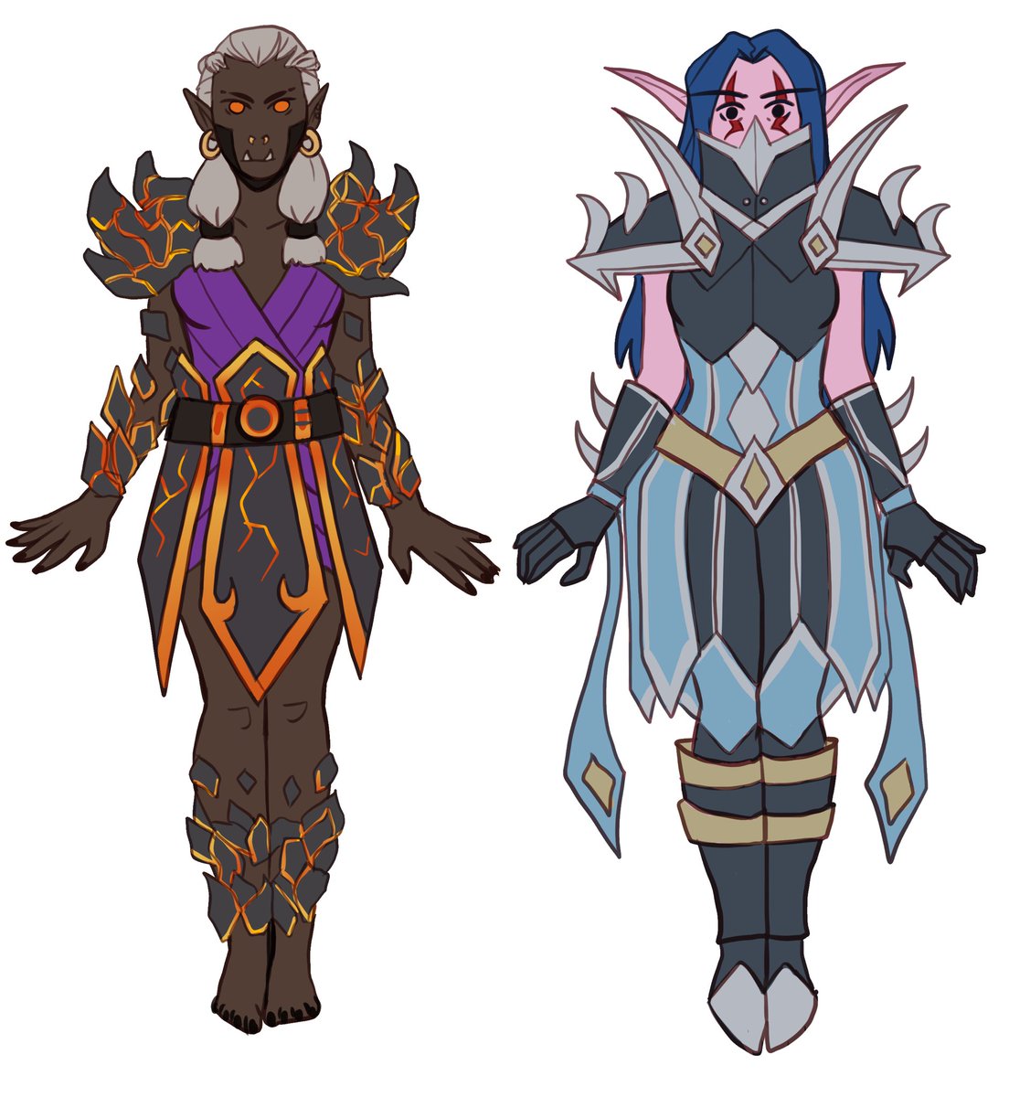 last redesigns of tier 1 ! shaman, warrior and warlock modelled by @sathiela , @scraleos & @uru_pel ‘s beautiful OCs
