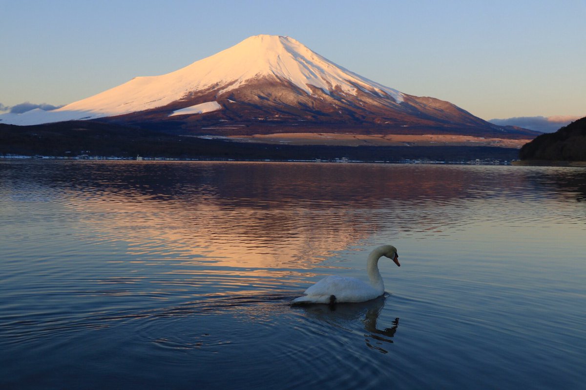 おはようございます。今朝は、宿の近くの山中湖・きららからスタートです。ピーカンでドラマは無さそうですが、湖面が今は鏡のようで逆さ富士