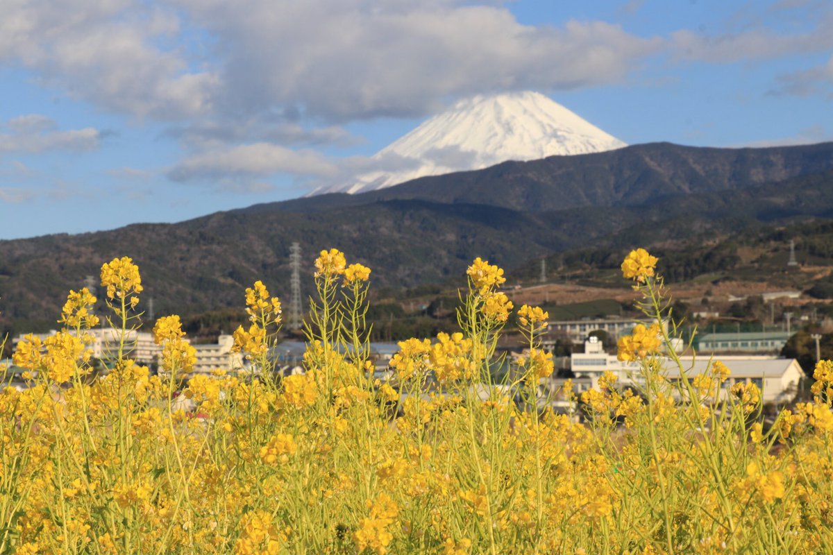 が咲いていそうな静岡方面へ。まずは沼津市のひまわりランドへ菜の花を。予想通り、富士山
