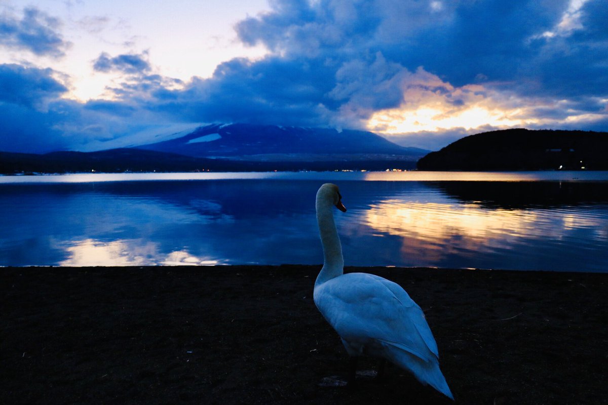 を一周後、帰り道で山中湖へ寄り道。夕焼け、二焼けとか期待したものの、富士山がほとんど雲隠れで、ダメでした。汚ないツイートをお許しください。