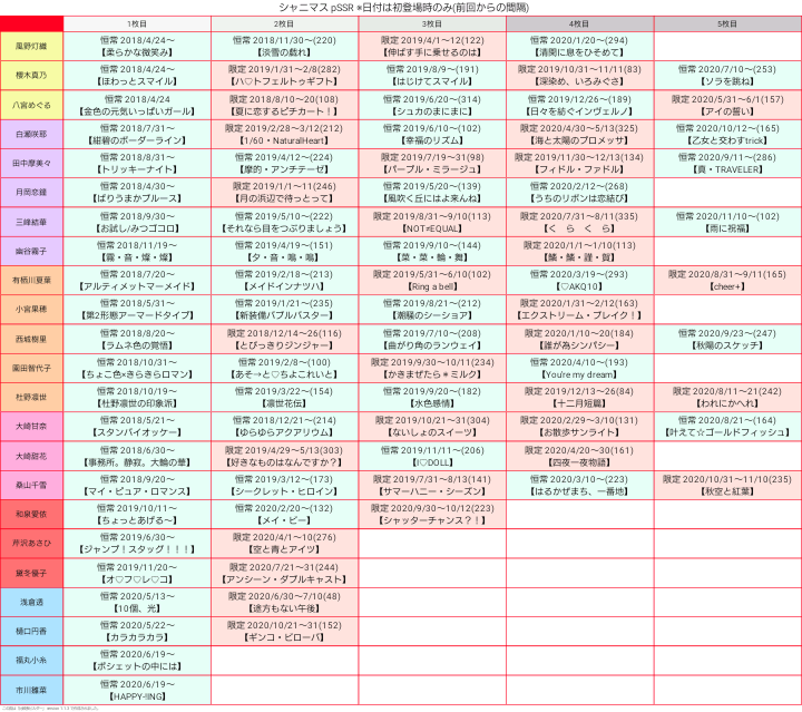今までのカードをまとめました。三峰結華さんのpSSRカードは102日ぶりです。pic.twitter.com/juwmKSSDRf