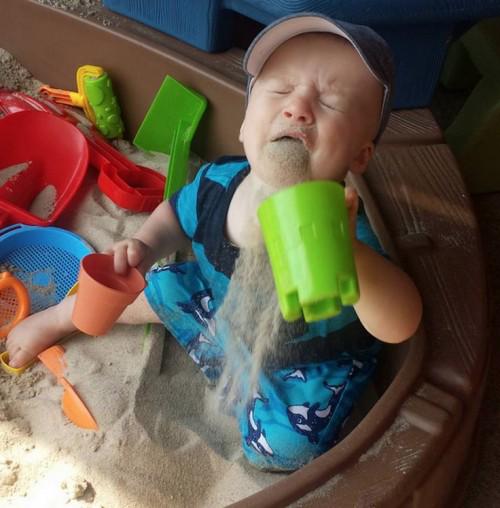 @imgur better watch him try to eat sand and take a photo than helping hey :D -