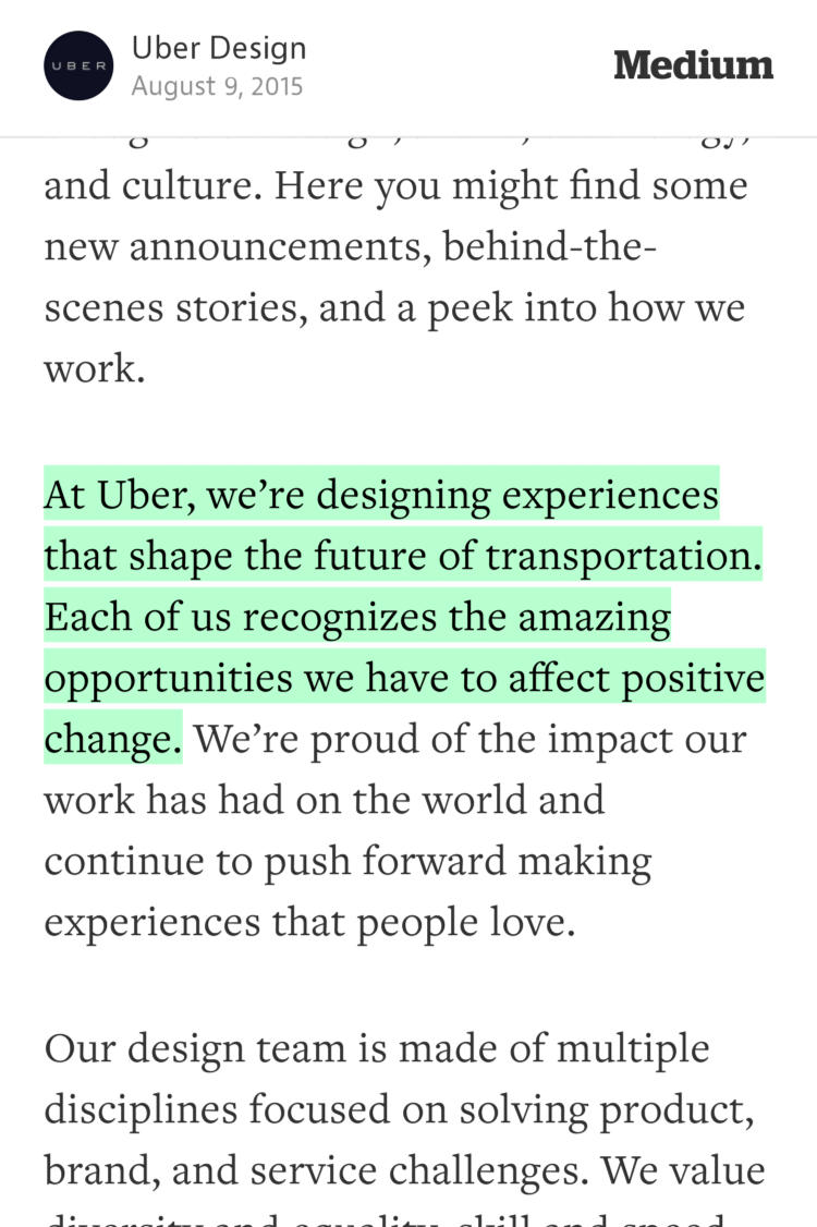 “At Uber, we’re designing experiences that shape the future of…” —