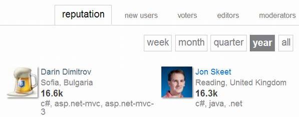 Holly cow! A guy from Sofia out-ranks John Skeet in the last year of StackOverflow reputation. Impressive!pic.twitter.com/wKwcdWQ4