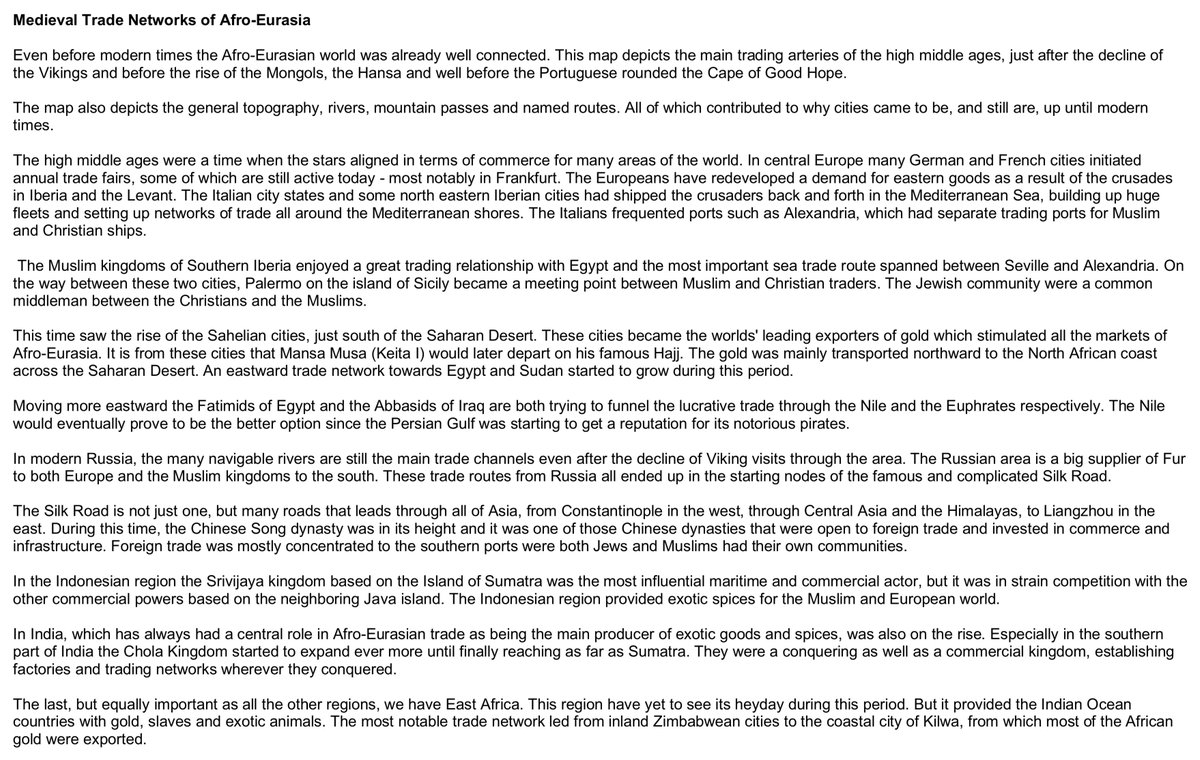 This is the most detailed map of Medieval trade routes in Europe, Asia and Africa in this era - the 11th and 12th centuries - now online. It includes major and minor locations, major and minor routes, sea routes, canals and roads. Here is martinjanmansson's introduction to it:pic.twitter.com/yC87SuZG03