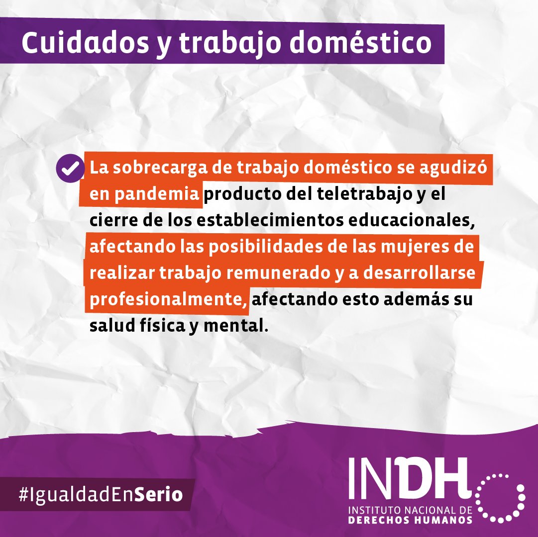 Durante la pandemia gran parte de los trabajos domésticos recayeron en las mujeres, disminuyendo sus posibilidades de realizar trabajo remunerado. Este #8m recordemos lo necesario de disminuir la brecha de desigualdad entre hombres y mujeres.#IgualdadEnSerio#8DeMarzopic.twitter.com/MYcvMt2EsI