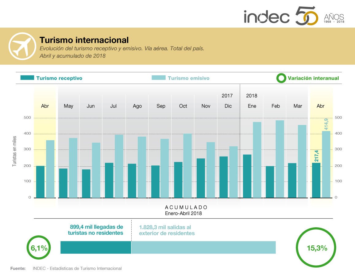 #DatoINDEC Turismo internacional: los arribos por vía aérea aumentaron 9% interanual, y las partidas, 15,5% en abril de 2018 http://www.indec.gob.ar/uploads/informesdeprensa/eti_06_18.pdf …pic.twitter.com/h1boLu4yR4