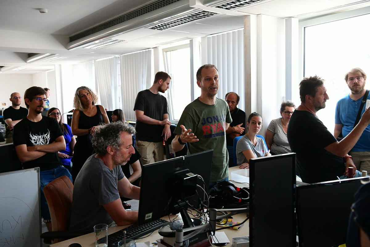 Pictures from yesterday's Index staff meeting where our request to reinstate our editor-in-chief who was fired on Wednesday was categorically refused. More information: https://index.hu/english/2020/07/24/index_szabolcs_dull_laszlo_bodolai_index_press_freedom_hungary/ …pic.twitter.com/2tR93oTuz0