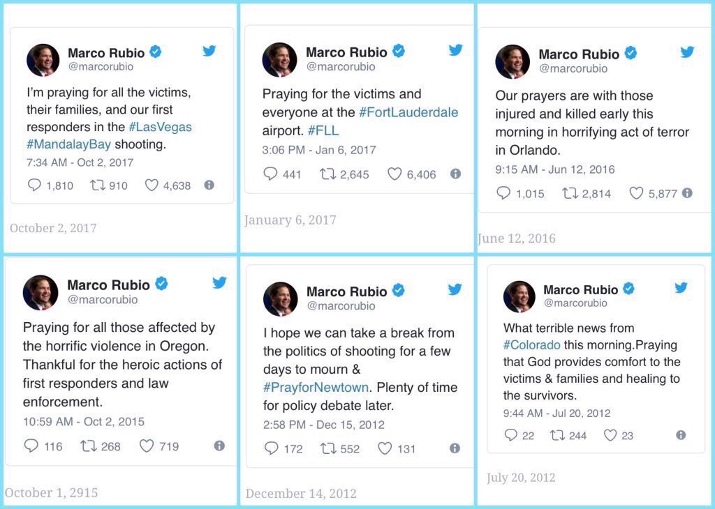 Hopefully his praying powers go further than Marco’s. All of @gop (including @RepRohrabacher @OCGOP and @fredOCGOP) are complicit in refusing to balance the need for safety with individual rights. They all have blood on their hands.pic.twitter.com/b6cNCv6Ee5