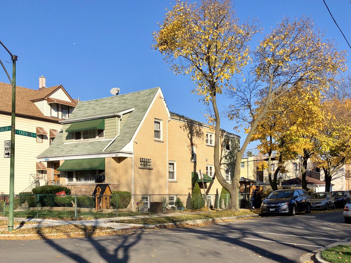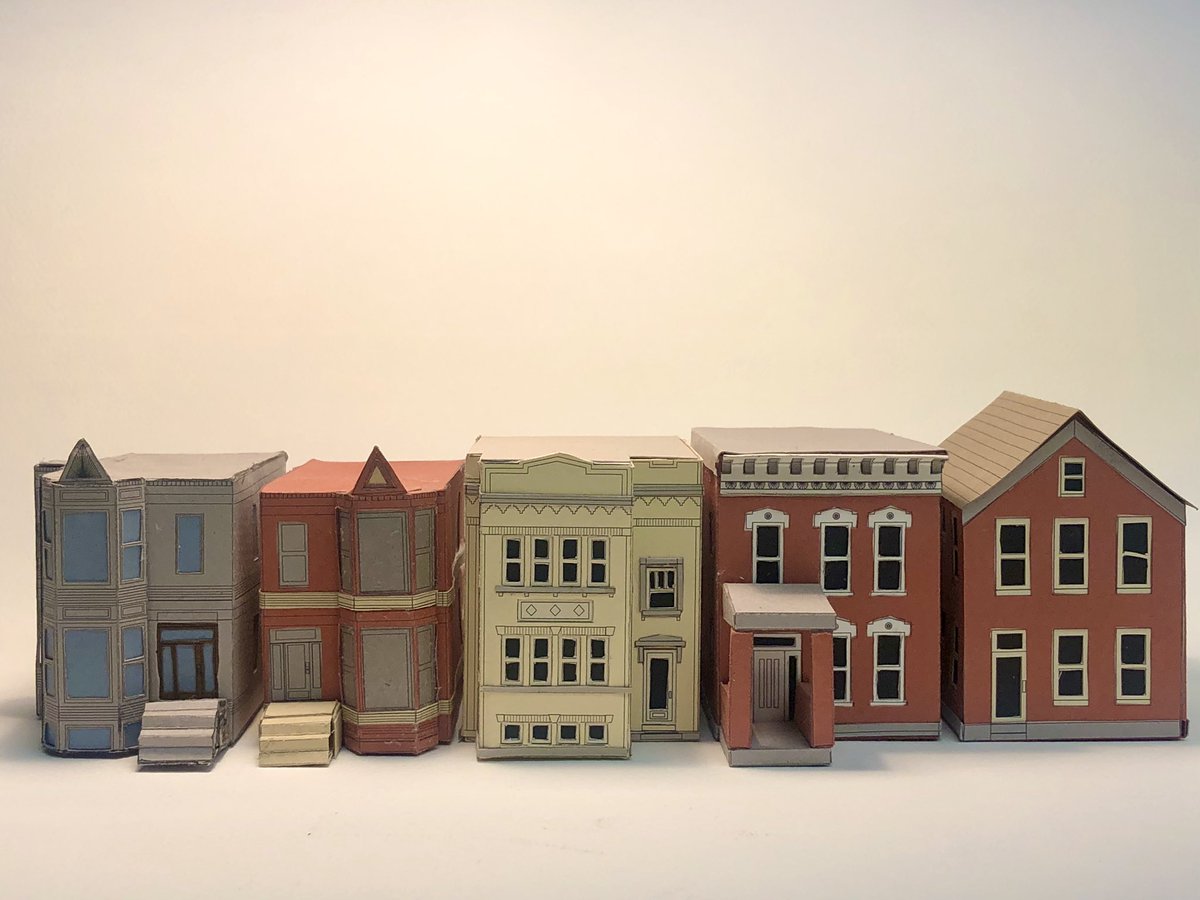 New papercraft house: 1920s yellow brick two-flat with square bay, door surround stonework, and stained glass windowspic.twitter.com/vmy9KUmkvt