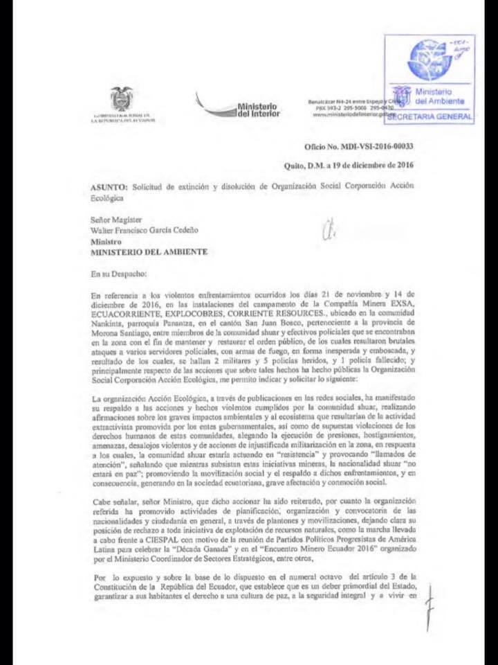 #AlertaDigitalEC Organización@AcEcologica en peligro de disolución a causa de publicaciones sobre conflicto minero en redes sociales.pic.twitter.com/jZo5n1zLRS
