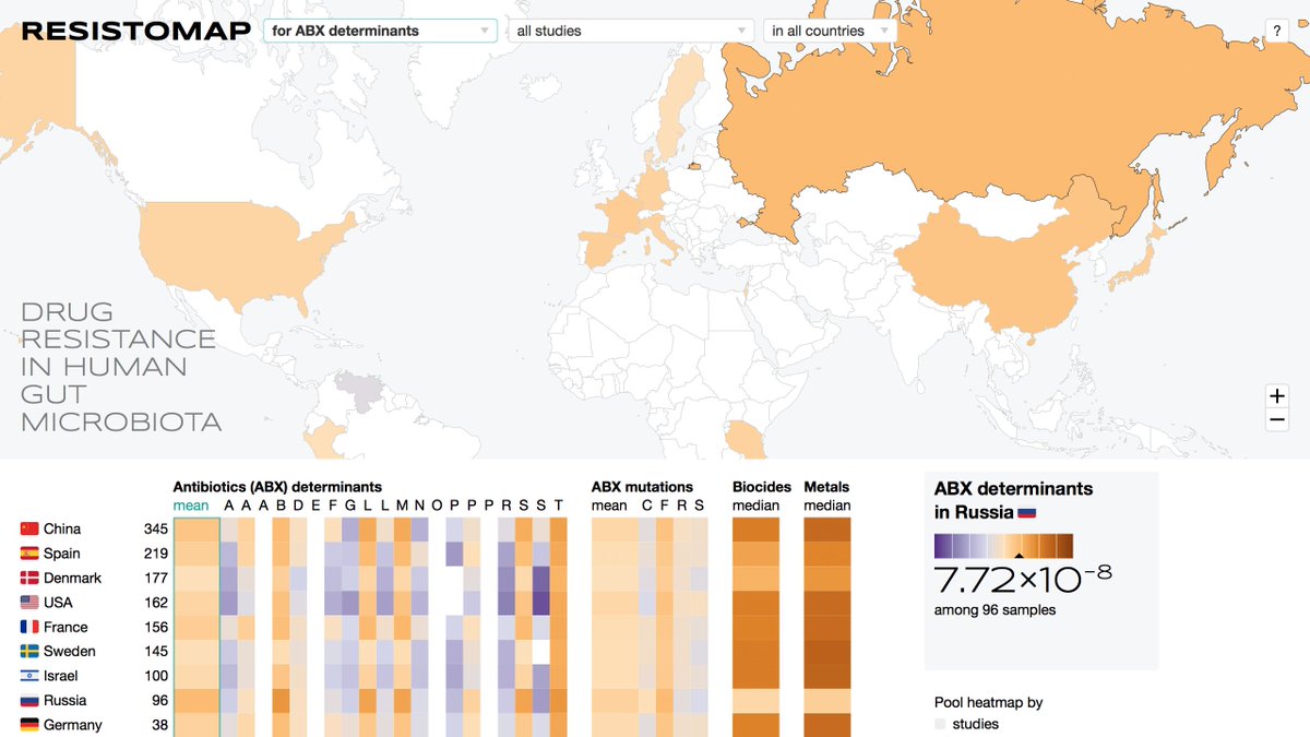Новая визуализация Лаборатории данных — карта резистентности кишечных микробиот: http://datalaboratory.ru/projects/resistomap/ …pic.twitter.com/gR0c6oXOyx