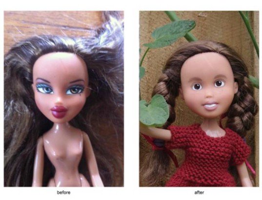 This artist finds used dolls at thrift shops and rehabilitates them with classy "makeunders." http://www.inhabitots.com/tree-change-dolls-gives-old-fashion-dolls-like-bratz-down-to-earth-makeunders/ …pic.twitter.com/0OOfWbZn7Q
