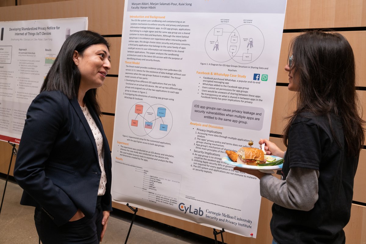 #DataPrivacyDay, INI students Marjan Salamati-Pour and Kuixi Song presented their@CyLab research with faculty advisor@HananHibshi on privacy vulnerabilities between apps.#PrivacyMatterspic.twitter.com/2yfUFBrjj5