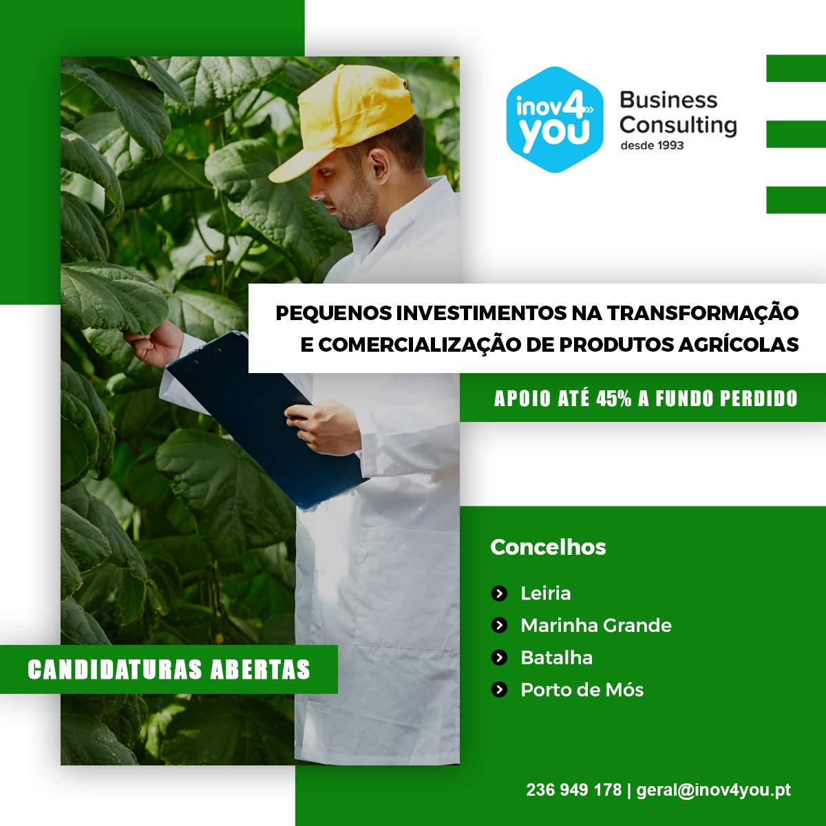 Apoio 45% a fundo perdido, para todo o país.