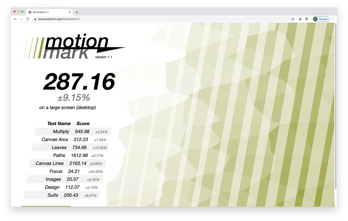 MotionMark results for Flow: 1196.89 vs Safari: 756.02, Chrome: 287.16 and Firefox: 110.63. Browser versions: Flow: 5.8.1, Safari: 13.0.4, Chrome: 79.0.3945.130, Firefox: 72.0.2 https://www.ekioh.com/devblog/motionmark-20200127/ …pic.twitter.com/8ceEonArsf