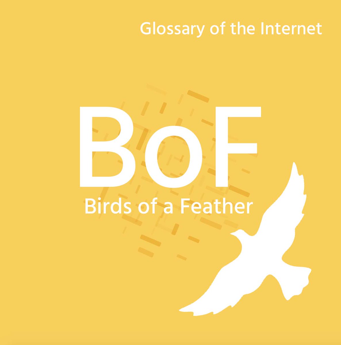 BoF (birds of a feather) takes the idiom and in computing terms means an informal discussion group. BoFs are informal ad hoc unlike more structured special interest groups or working groups.