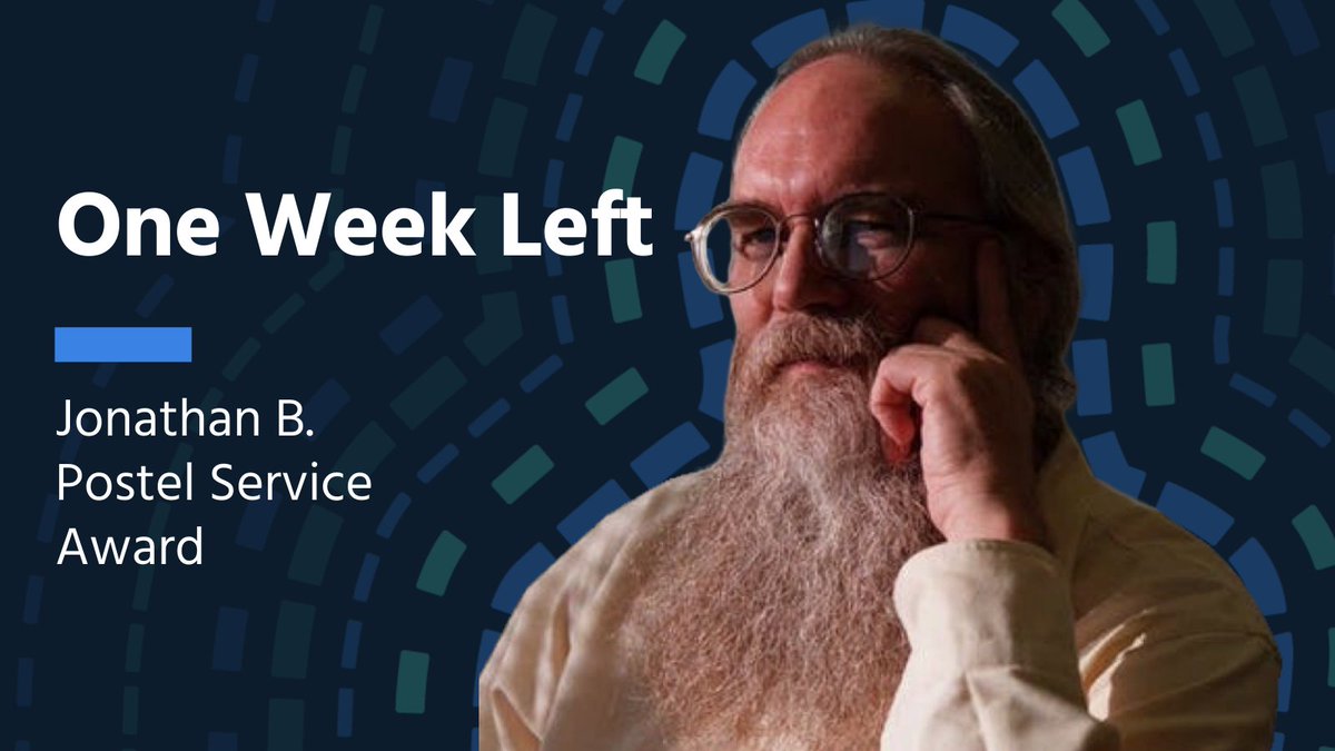 ONE WEEK left to apply for the Jonathan B. Postel Service Award!