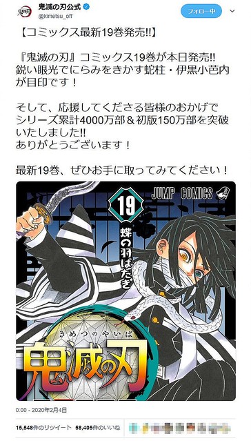 【入手困難】大人気『鬼滅の刃』コミックス最新19巻、本日4日発売! https://news.livedoor.com/article/detail/17764800/ … シリーズ累計4000万部&初版150万部を突破。Amazonでは早速最新刊が売り切れになっているそう。pic.twitter.com/Nd6coDb8tg