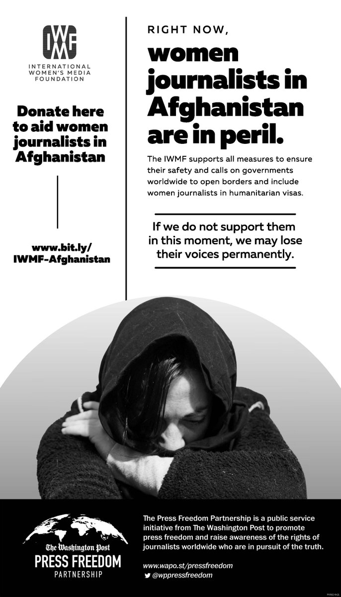@washingtonpost, we're spotlighting the perilous situation for women journalists in#Afghanistan and calling on international governments to open their borders to media workers. This crisis is ongoing. Support our relief efforts: https://bit.ly/IWMF-Afghanistan ….pic.twitter.com/7VEJwkQ65G