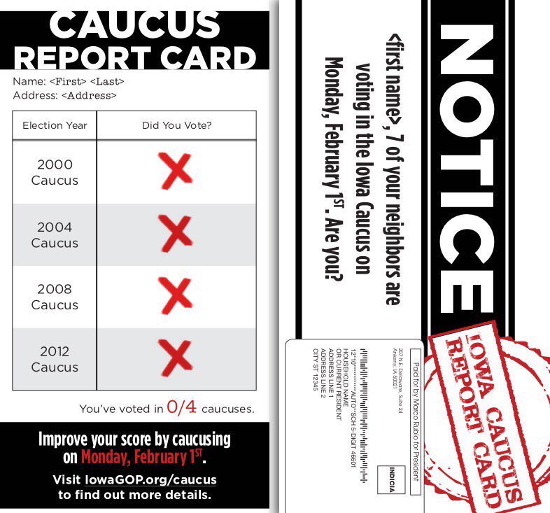 @MinneMike @iowanpolitics The mailers WAY different. Cruz mailer put shared neighbors info & looked official with "VOTER VIOLATION" message