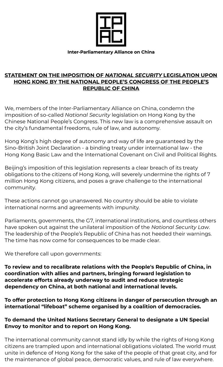 UPDATE: One month on from its launch #IPAC has led unprecedented coordinated global action on #HongKong and #Xinjiang.
