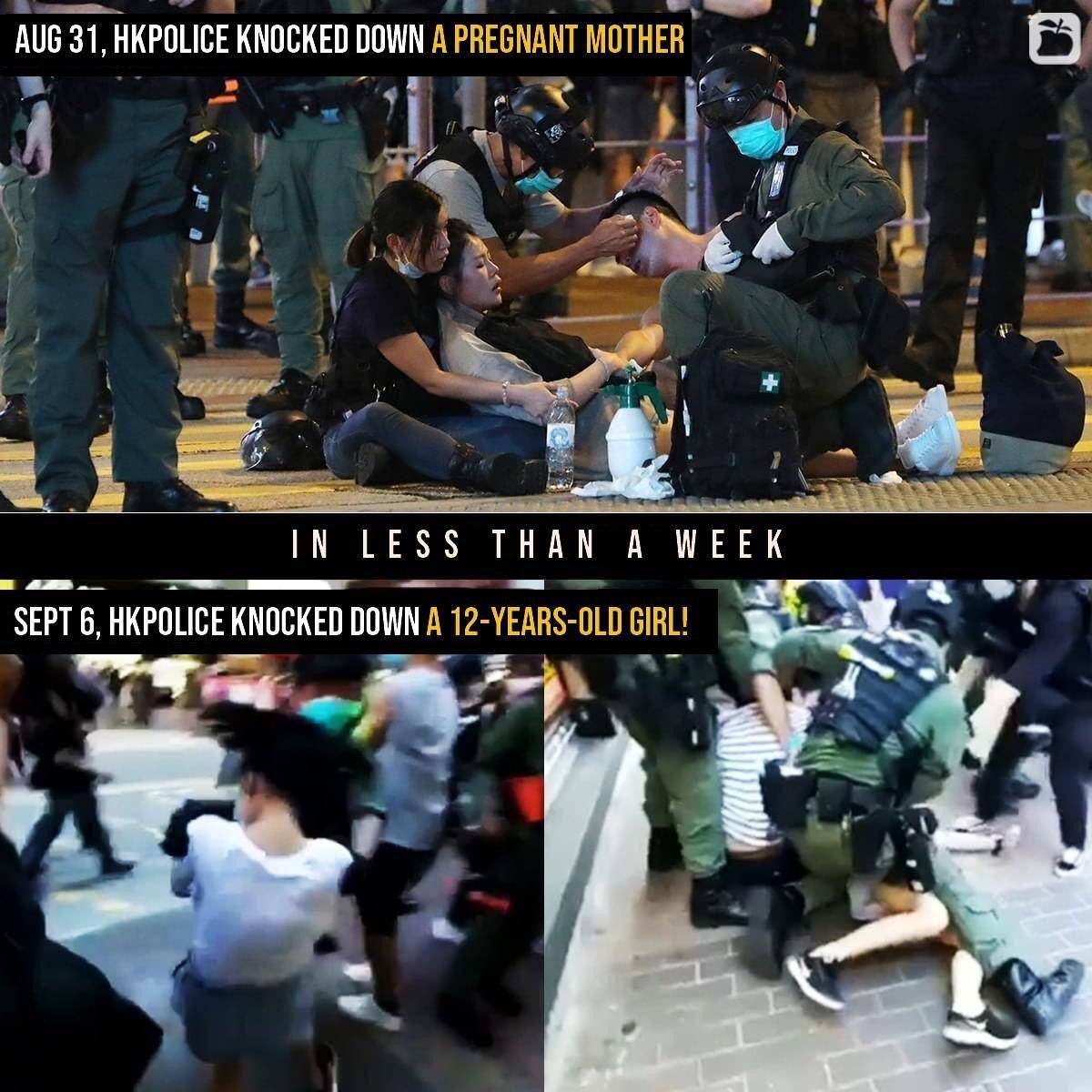 HK police use of extreme and unnecessary violence without any consequences. They hold NO responsible for pushing an innocent pregnant to the ground or knocking a 12 y/o girl down. This is #HKPoliceState. #HKPoliceTerrorists