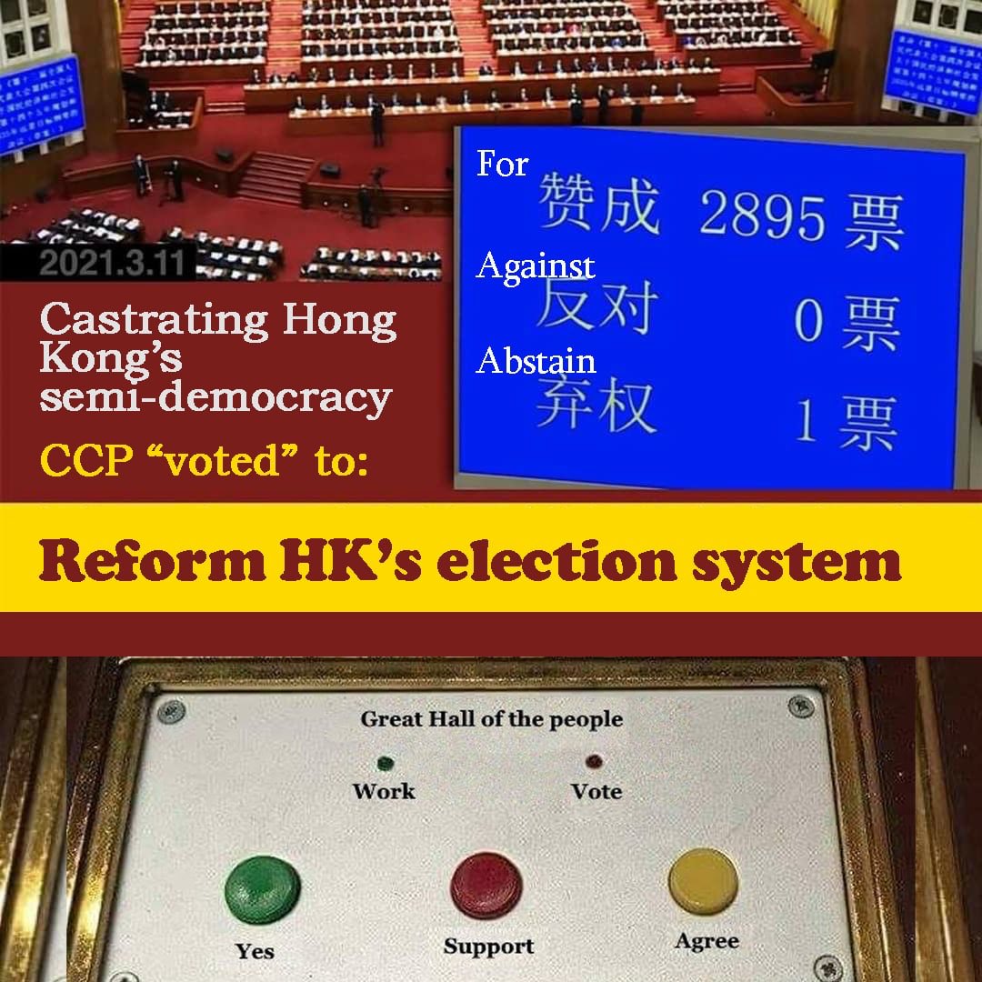 Freedom of Tibet, Uighur, Mongolia, HK are totally suppressed by CCP. No freedom of speech, press. Manipulate Jurisdiction, education. Steal intelligence & privacy. Genocide in Xingjiang & later in HK. But remember, if world countries not stop CCP now. Then, Today HK, World Tmw.
