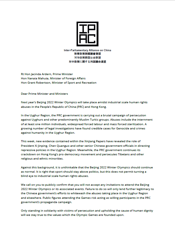 in announcing diplomatic boycott of the #Beijing2022 Winter Olympics.