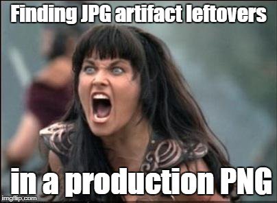 Me, when finding leftover JPG artifacts in a (production) PNG. I'm sure I'm not the only one.pic.twitter.com/HY3sg0oe62
