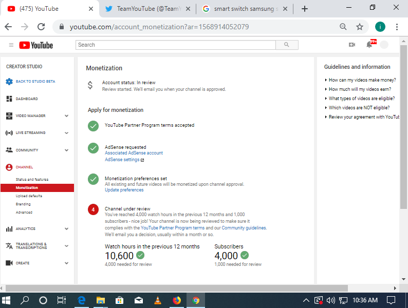 @TeamYouTube hello team youtube what should i do to my channel(https://www.youtube.com/account_monetization?ar=1568914052079 …) if its already completed but still undereview,please help me if there a problem in it,i need your advices to know what should i suppose to do to get moniterisedpic.twitter.com/MQBIS5JwAf