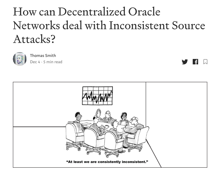 @joeykrug in August, Inconsistent Source Attacks have been a recent subject of interest within the Witnet community. Here's our new article on the challenges they pose, and the solutions Witnet propose. https://medium.com/witnet/how-can-decentralized-oracle-networks-deal-with-inconsistent-source-attacks-f1cdde838795 …#decentralized#oraclespic.twitter.com/ZVLU2iKcRl