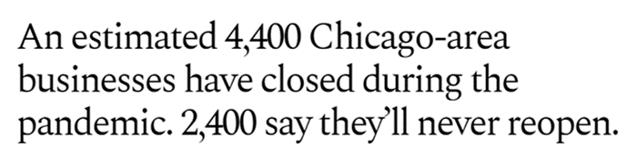 Of the approx 4,400 Chicago area businesses on Yelp, 2,400 have closed permanently. Nationally 55% of all closures on Yelp are permanent. You can thank a mass violation of property rights by state & local govt for breaking the backbone of America. #smallbiz pic.twitter.com/952OcxD1To