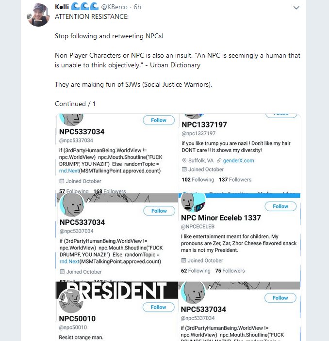 #NPCs are following and retweeting#NPC troll accounts because they spew the same group-think. And so they have to be TOLD not to follow them. The irony here is off the charts.