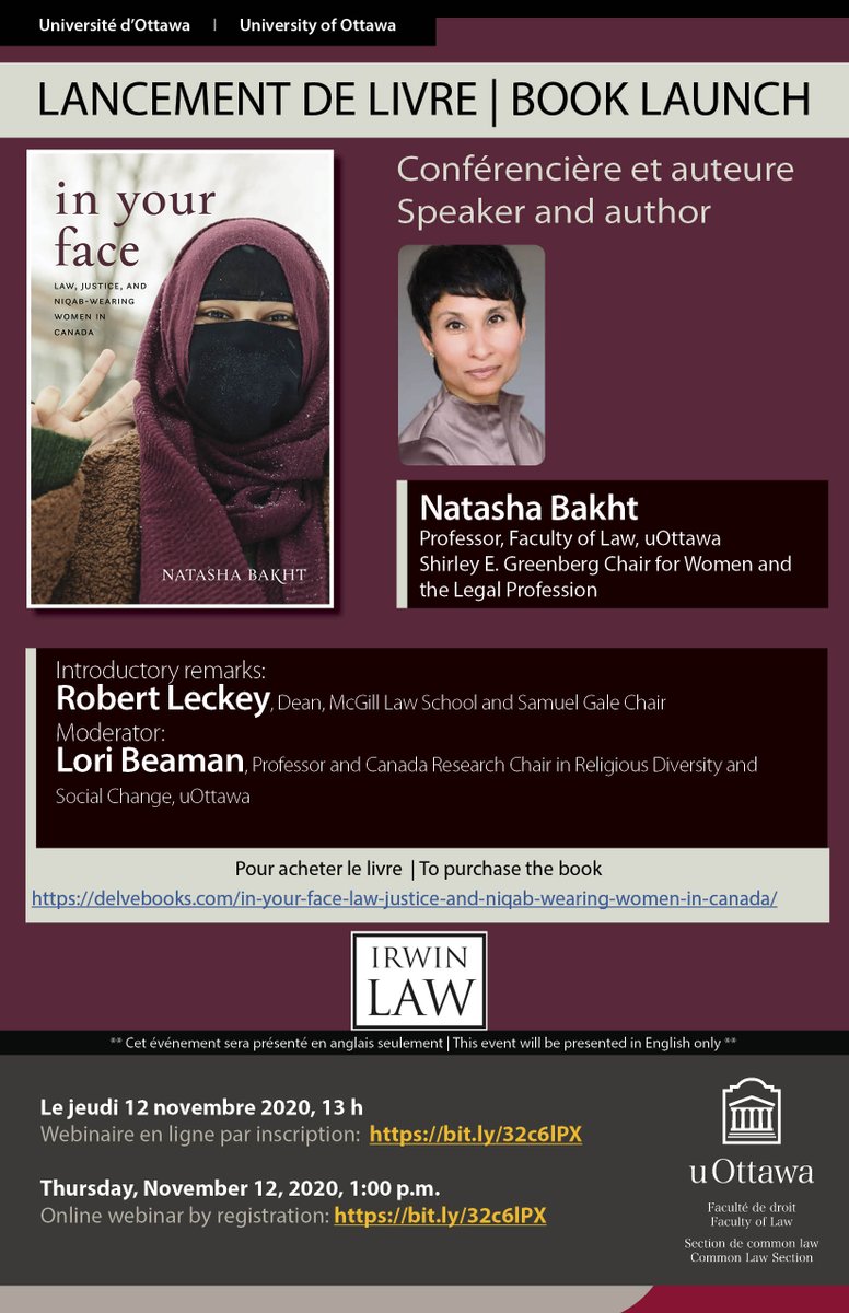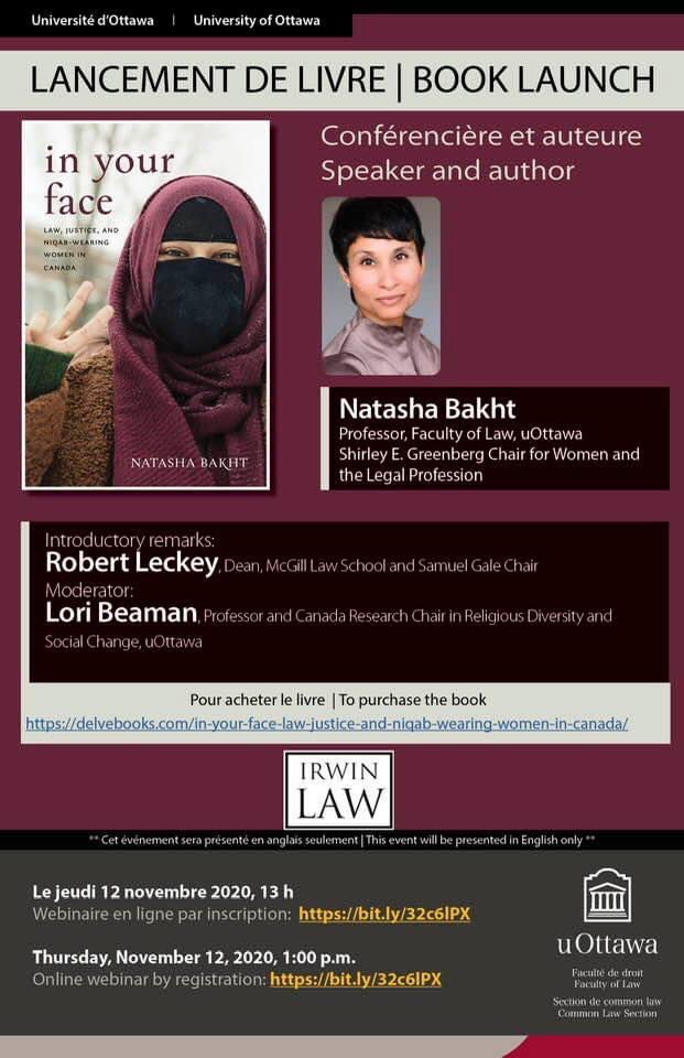 Book launch! Natasha Bakht’s In Your Face about niqab-wearing women and the law in Canada. Next week!pic.twitter.com/NN2SVfXJJW