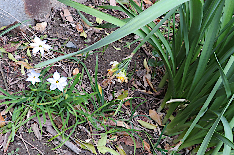 #水仙 (花は枯れたけど)と、#ハナニラ の饗宴。 どっちも#ニラ と間違えて食べてしまって食中毒を起こす植物。 まさか両方とも庭に植わっているとは…。それも並んで…。pic.twitter.com/z4O0Dqz56X