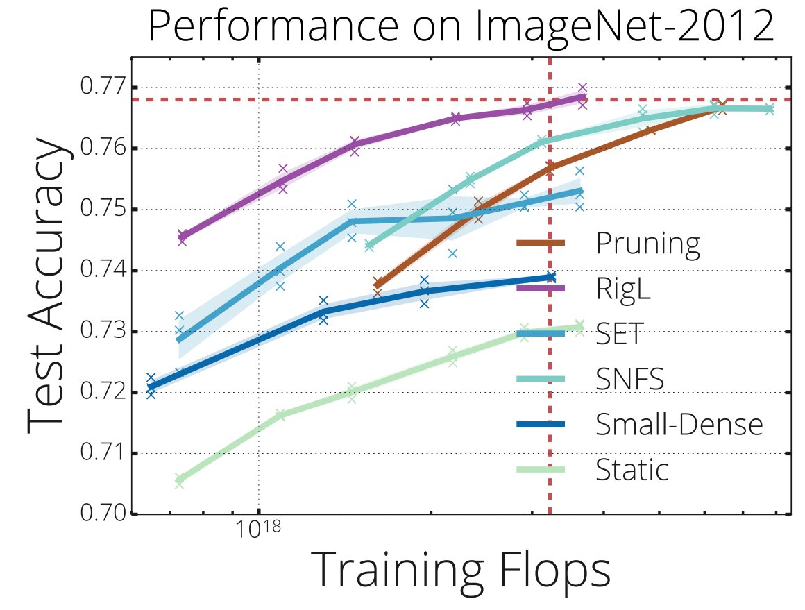 We also introduce a technique [https://arxiv.org/abs/1911.11134 ] for training neural networks that are sparse throughout training from a random initialization - no luck required, all initialization “tickets” are winners.pic.twitter.com/fA7VmXrj20