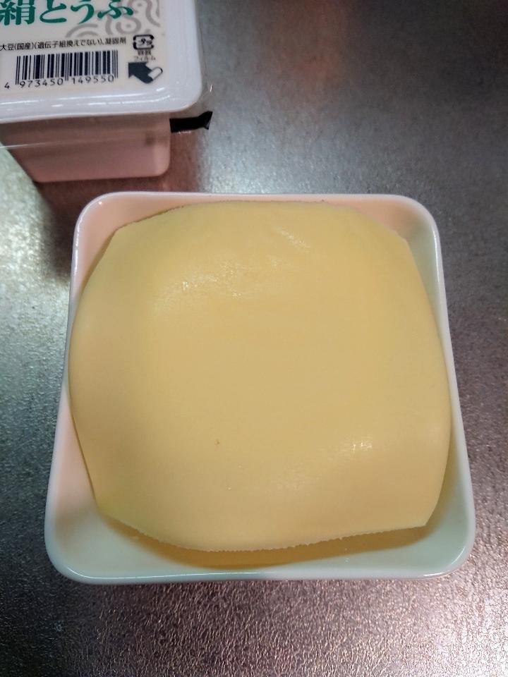 お豆腐の上にスライスチーズを乗せて、 レンジでチン